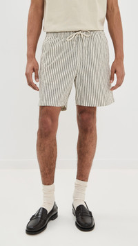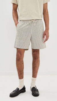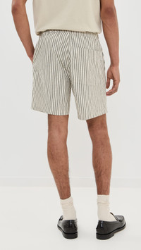 - Fabric: Lightweight, non-stretch weave - Stripe pattern - Covered elastic waist with drawstring - Slant hip pockets and patch back pockets - Shell: 50% cotton/49% polyester/1% elastane - Dry clean - Imported, Turkey Style #NNSEV30111 Size & Fit Model measurements: Size M: Adarsh (6'1.5") usually wears size M Measurements from size M Rise: 11.5in / 29cm Inseam: 6.25in / 16cm Outseam: 17in / 43cm