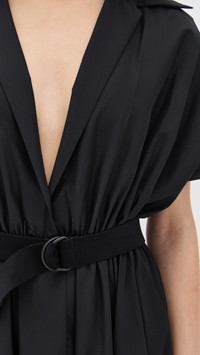 - Fabric: Lightweight, low-stretch technical weave - Hidden Velcro placket - Midi length - Collared neck - Short cap sleeves - Covered elastic at waist and optional D-ring belt - On-seam side pockets - Shell: 100% polyester - Unlined - Wash cold - Imported, China Style #NKAMA31212