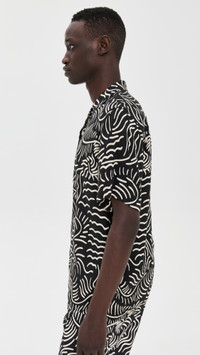 - Fabric: Lightweight, non-stretch silky weave - Abstract print - Camp collar - Button placket - Shell: 100% viscose - Wash cold - Made in Portugal - Short sleeves Style #OASCO30058 Size & Fit Model measurements: Size M: Lino (6'2") usually wears size M Measurements from size M Length: 30in / 76cm Chest: 45in / 114cm