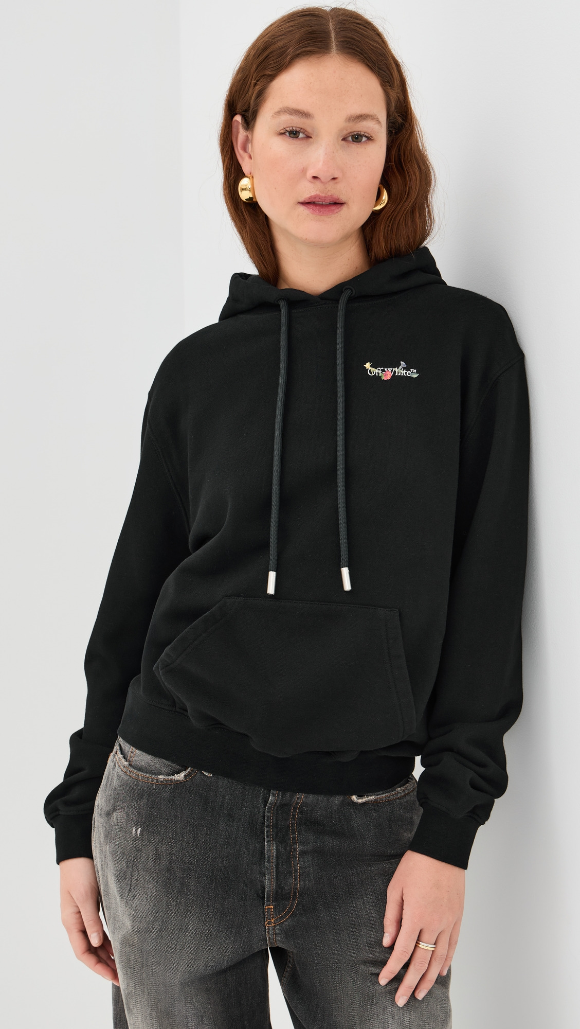 - Fabric: Mid-weight french terry with stretch - Floral and logo graphic at breast and back - Drawstring hood - Ribbed trim - Hooded neckline - Long sleeves with dropped shoulders - Kangaroo pocket - Shell: 100% cotton - Trim: 95% cotton/5% elastane - Wash cold - Made in Italy Style #OFFWH30449 Size & Fit Model measurements: Size XS: Maia (5'10") usually wears size XS Measurements from size XS Length: 24in / 61.0cm, from shoulder
