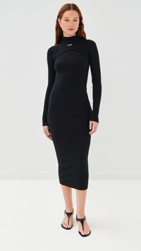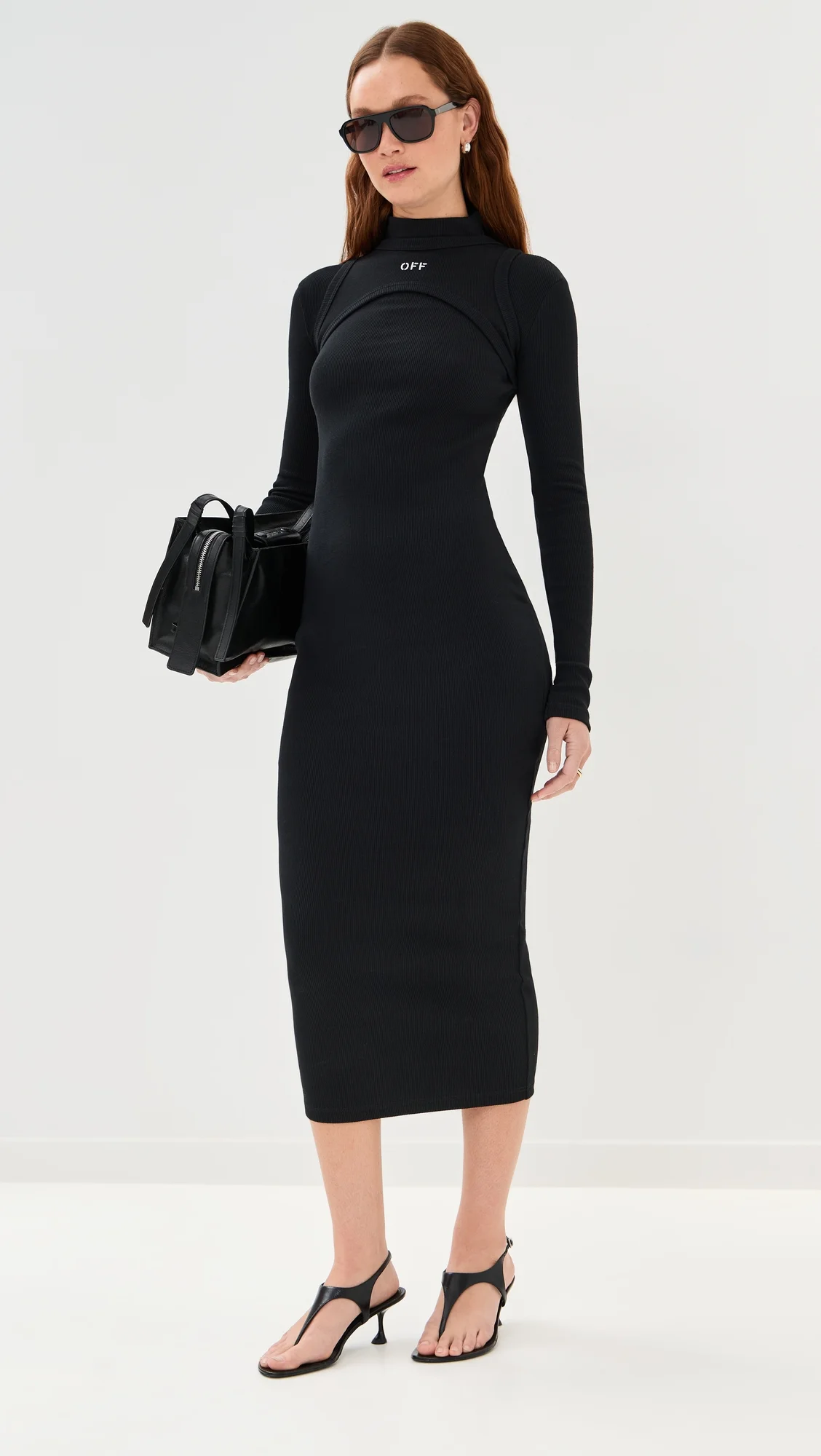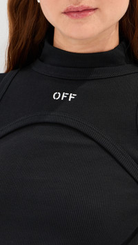 - Fabric: Lightweight ribbed jersey with stretch - Layered chest harness with contrast logo embroidery - Midi length - Turtleneck - Long sleeves - Pullover design, no closure - Shell: 98% cotton/2% elastane - Unlined - Wash cold - Made in Italy Style #OFFWH30454