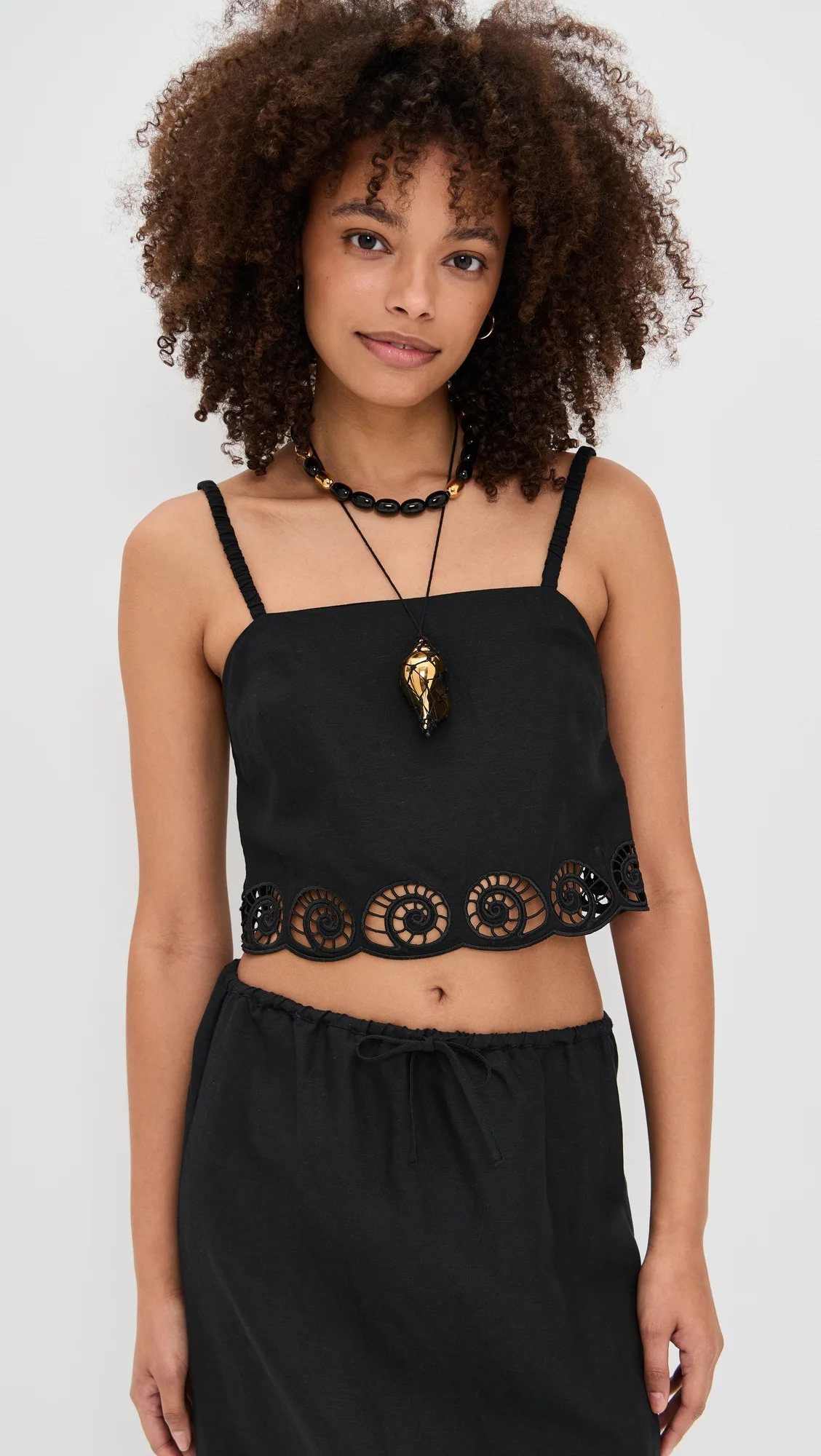 Scalloped Linen Cropped Top black