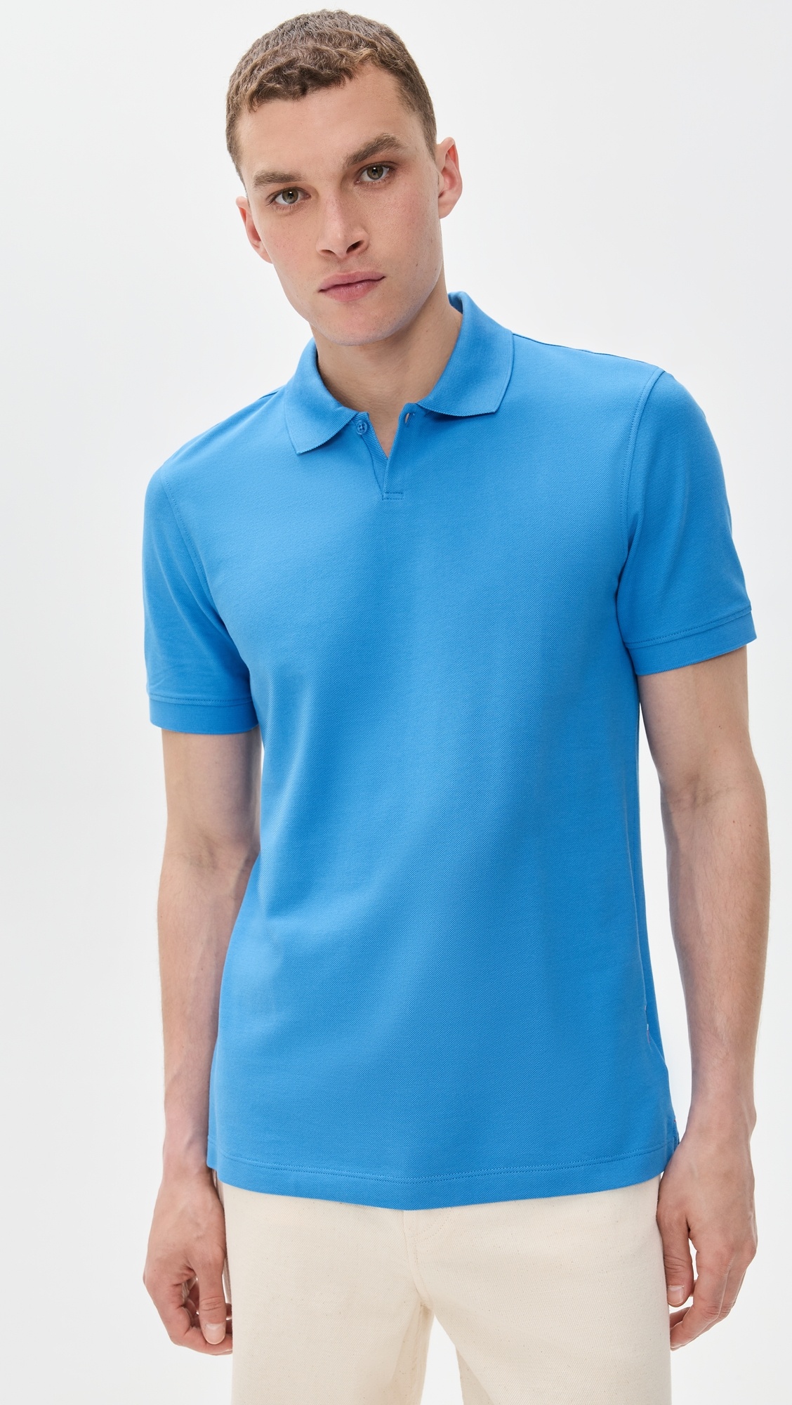 - Fabric: Lightweight pique knit - Ribbed edges - Polo neckline - Partial button placket - Shell: 100% cotton - Wash cold - Imported, Romania - Short sleeves Style #ORLEB30069