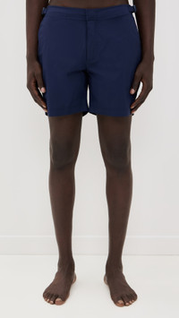 - Fabric: Lightweight, stretch technical weave - Adjustable buckle tabs at waist - Button closure and zip fly - Slant hip pockets and welt back pockets - Shell: 88% polyamide/12% elastane - Mesh lining - Wash cold - Imported, Cambodia Style #ORLEB30007 Size & Fit Model measurements: Size 32: Lino (6'2") usually wears size 32 Measurements from size 30 Rise: 10.25in / 26cm Inseam: 6.25in / 16cm Outseam: 16.5in / 42cm
