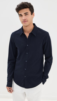 - Fabric: Lightweight pique knit - Collared neckline - Button placket - Shell: 100% cotton - Wash cold - Imported, Romania - Long sleeves with button cuffs Style #ORLEB30045 Size & Fit Model measurements: Size M: Laurence (6'2") usually wears size M Measurements from size M Length: 29.5in / 75cm Sleeve: 33.5in / 85cm Chest: 41in / 104cm