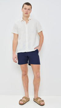 - Fabric: Lightweight, low-stretch technical weave - Partial elastic waist with drawstring - Snap closure and zip fly - Slant hip pockets and zip back pocket - Shell: 100% polyamide - Mesh lining - Lining: 95% polyester/5% elastane - Wash cold - Imported, Cambodia Style #ORLEB30008 Size & Fit Model measurements: Size 33: Grant (6'3") usually wears size 33-34 Measurements from size 31 Rise: 10.25in / 26cm Inseam: 6in / 15cm Outseam: 15in / 38cm