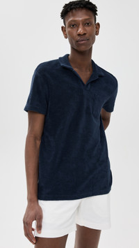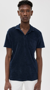 - Fabric: Mid-weight terry cloth - Collared neckline - Patch breast pocket - Shell: 100% cotton - Wash cold - Imported, Turkey - Short sleeves Style #ORLEB30009 Size & Fit Model measurements: Size M: Jobe (6'2.5") usually wears size M Measurements from size M Length: 28.75in / 73cm Chest: 41.75in / 106cm