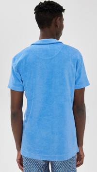 - Fabric: Mid-weight terry cloth - Collared neckline - Patch breast pocket - Shell: 100% cotton - Wash cold - Imported, Turkey - Short sleeves Style #ORLEB30011 Size & Fit Model measurements: Size M: Jobe (6'2.5") usually wears size M Measurements from size M Length: 28.75in / 73cm Chest: 41.75in / 106cm