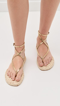 - Upper: Goatskin - Metallic snakeskin print - Braided jute footbed - Thong strap - Lining: Leather - Wraparound ankle strap - Open toe - Leather sole - Made in Italy - This item cannot be gift-boxed Style #PTEXA30200