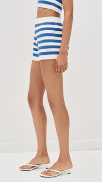 - Fabric: Lightweight stretch knit - Striped pattern - Covered elastic waistband - Shell: 78% polyester/22% viscose - Wash cold - Imported, China Style #POSSE30133 Size & Fit Model measurements: Size XS: Mical (5'10") usually wears size XS Measurements from size S Rise: 11.75in / 30cm Inseam: 2in / 5cm