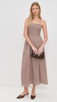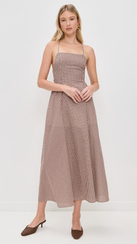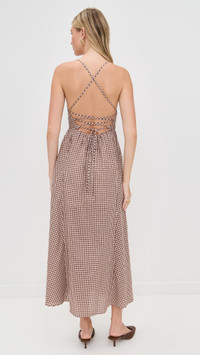 - Fabric: Lightweight, non-stretch weave - Check pattern - Midi length - Square neckline - Sleeveless - Lace-up at back - Partial elastic waistband - Shell: 100% cotton - Lined - Hand wash - Imported, India Style #POSSE30153 Size & Fit Model measurements: Size XS: Giselle (5'10") usually wears size XS Measurements from size XS Length: 50in / 127.0cm, from shoulder
