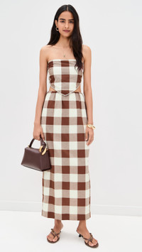 - Fabric: Lightweight, non-stretch weave - Check pattern - Strapless - Sleeveless - Ties at back - Shell: 100% cotton - Lined - Hand wash - Imported, India Style #POSSE30135 Size & Fit Model measurements: Size XS: Priyanka (5'9") usually wears size XS Measurements from size XS Length: 14.5in / 37.0cm