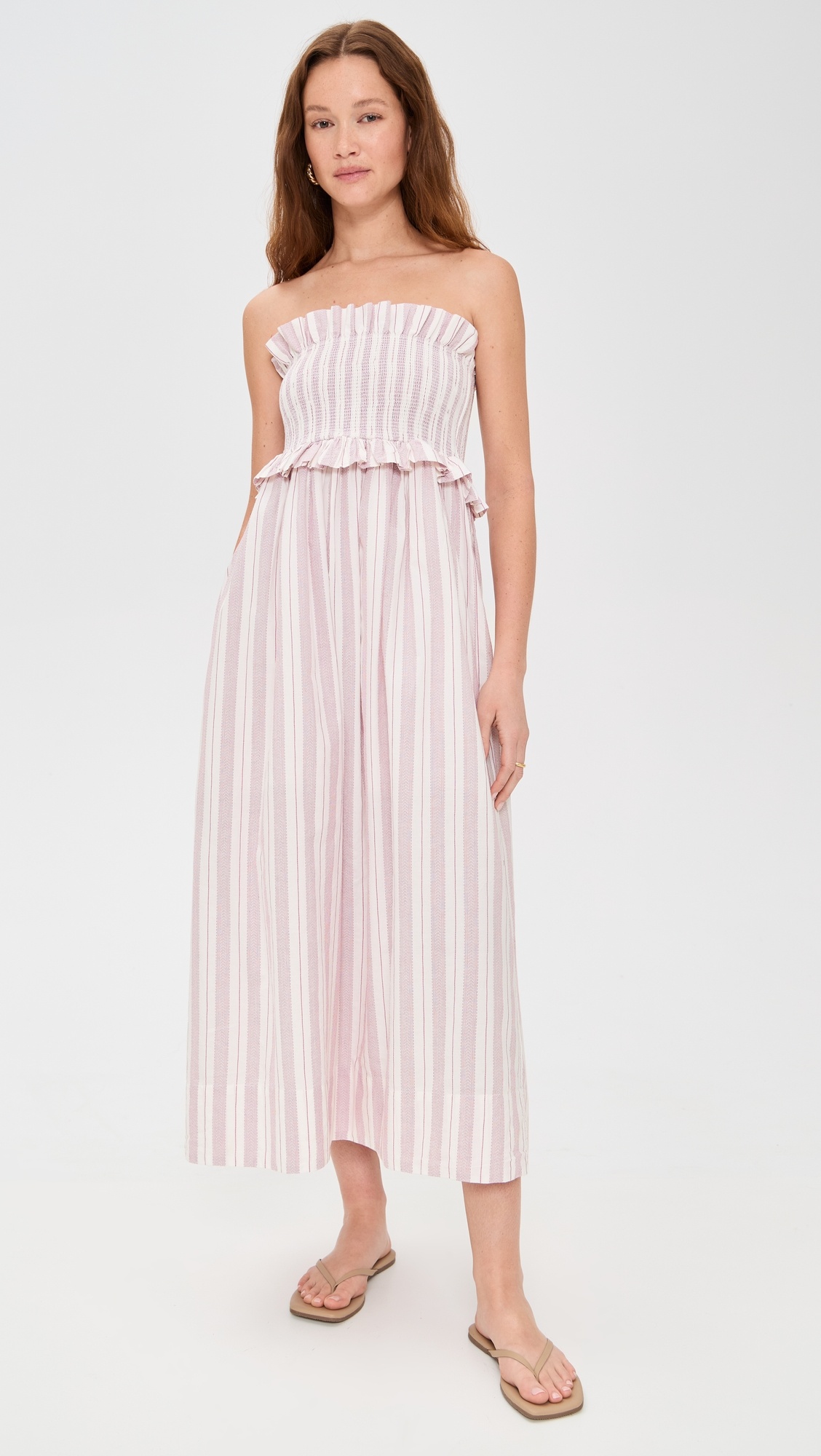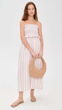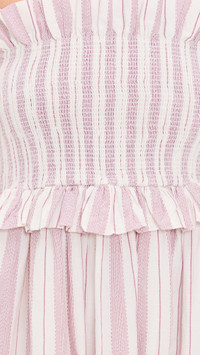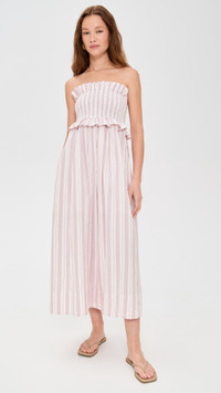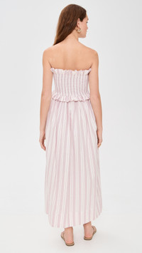 - Fabric: Lightweight, non-stretch weave - Smocked elastic bodice - Ruffle trim at waist and neckline - Striped pattern - Maxi length - Strapless - Pullover design, no closure - Shell: 100% cotton - Lined - Hand wash - Imported, India Style #POSSE30099 Size & Fit Customers say: Runs large; please size down. Model measurements: Size XS: Maia (5'10") usually wears size XS Measurements from size S Length: 44.5in / 113.0cm, from center back