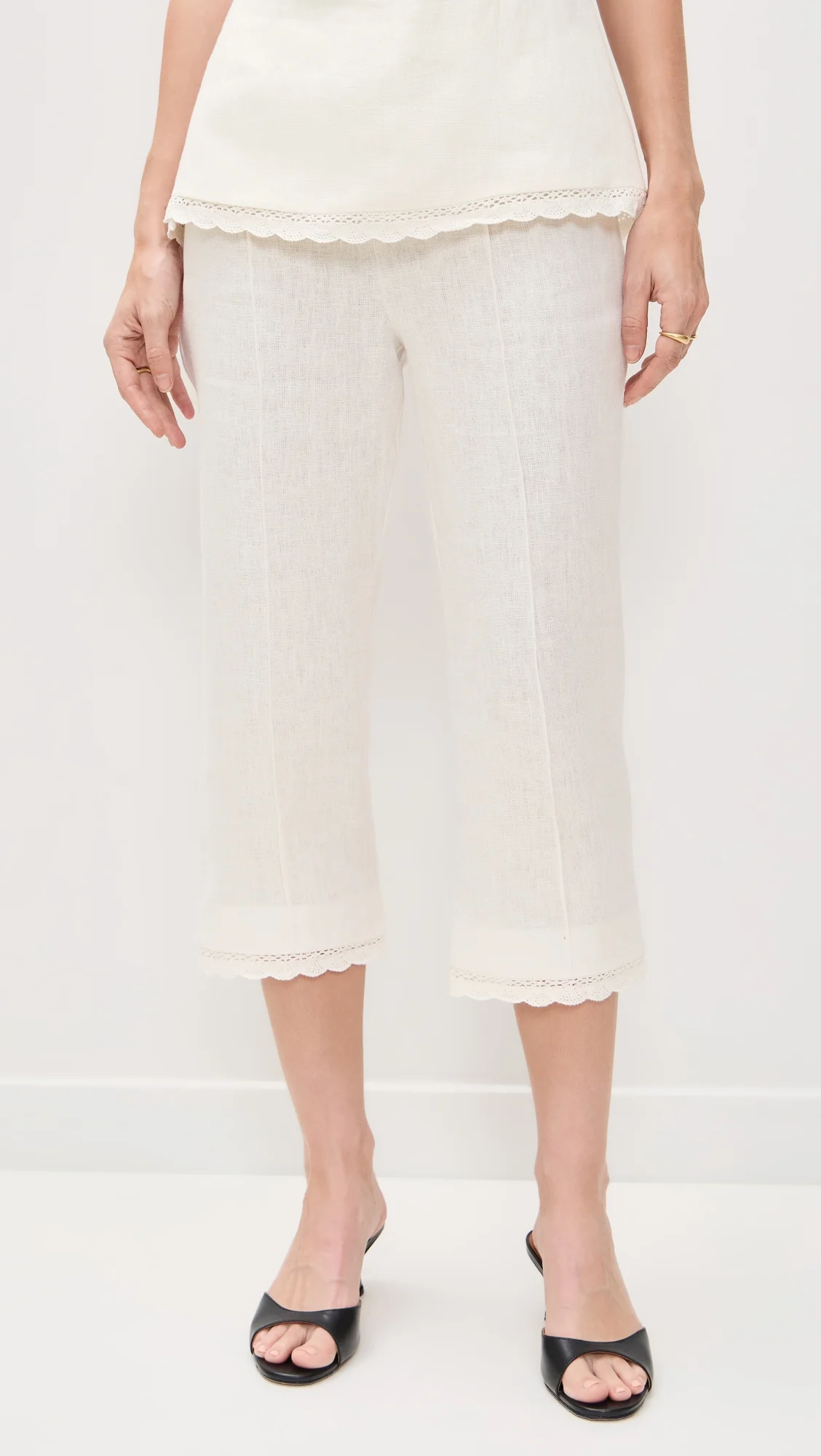 - Fabric: Mid-weight, non-stretch linen weave - Scalloped crochet trim - Pintuck seams at front - Hook-and-eye and hidden zip at side - Shell: 100% linen - Trim: 100% cotton - Dry clean - Imported, China Style #POSSE30156