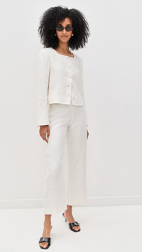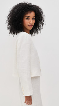 - Fabric: Mid-weight, non-stretch linen weave - Padded shoulders - Square neckline - Long sleeves with button cuffs - Button placket - Shell: 100% linen - Lined - Lining: 100% cotton - Dry clean - Imported, China Style #POSSE30148 Size & Fit Model measurements: Size S: Mical (5'10") usually wears size XS Measurements from size S Length: 18in / 46.0cm, from shoulder