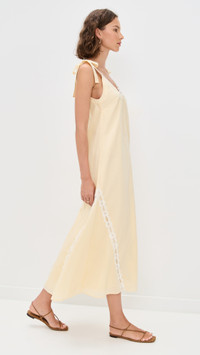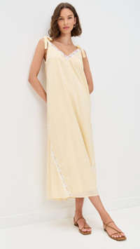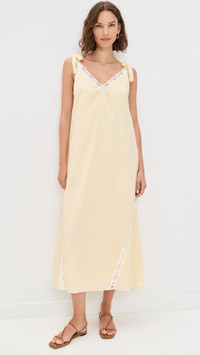- Fabric: Lightweight, low-stretch poplin - Lace details - Tie shoulder straps - Midi length - V neck - Adjustable shoulder straps - Hook-and-eye and hidden zip at side - Shell: 60% tencel lyocell/40% cotton - Trim: 96% nylon/4% elastane - Lined - Lining: 100% cotton - Dry clean - Imported, China Style #POSSE30139
