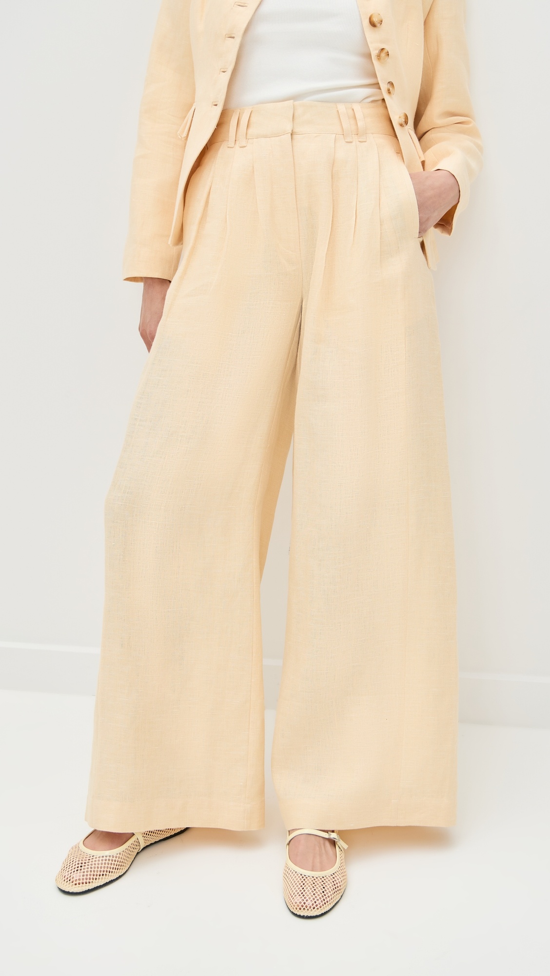 - Fabric: Lightweight, non-stretch linen weave - Pleated front - Hook-and-eye closures at waist, zip fly - Faux on-seam side pockets - Shell: 100% linen - Wash cold - Imported, China Style #POSSE30092 Size & Fit Model measurements: Size XS: Isabella (5'9") usually wears size XS Measurements from size S Rise: 13.75in / 35cm Inseam: 30.75in / 78cm Leg opening: 27.5in / 70cm