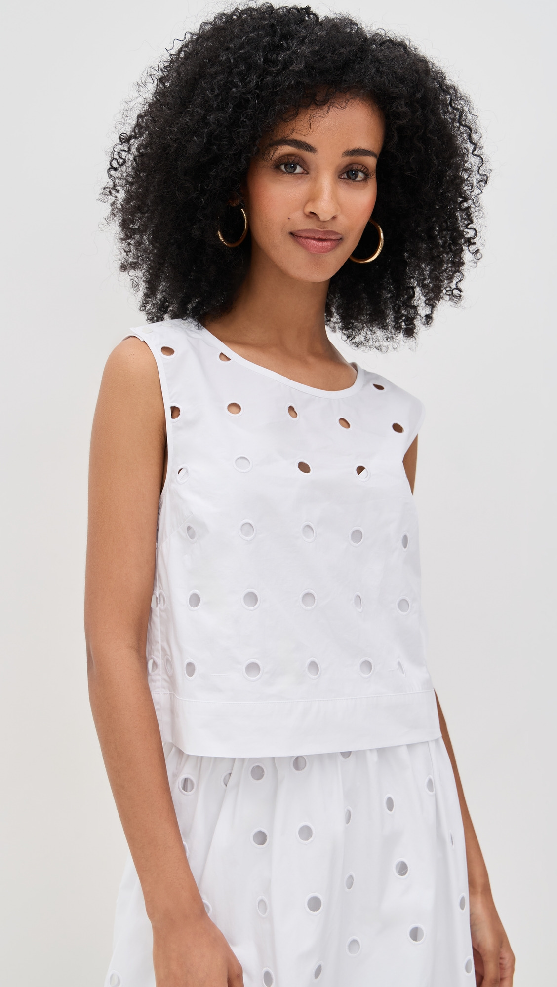 Peggy broderie anglaise cotton-poplin tank White