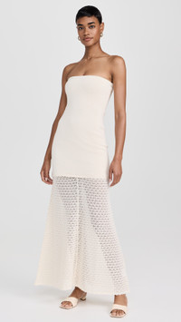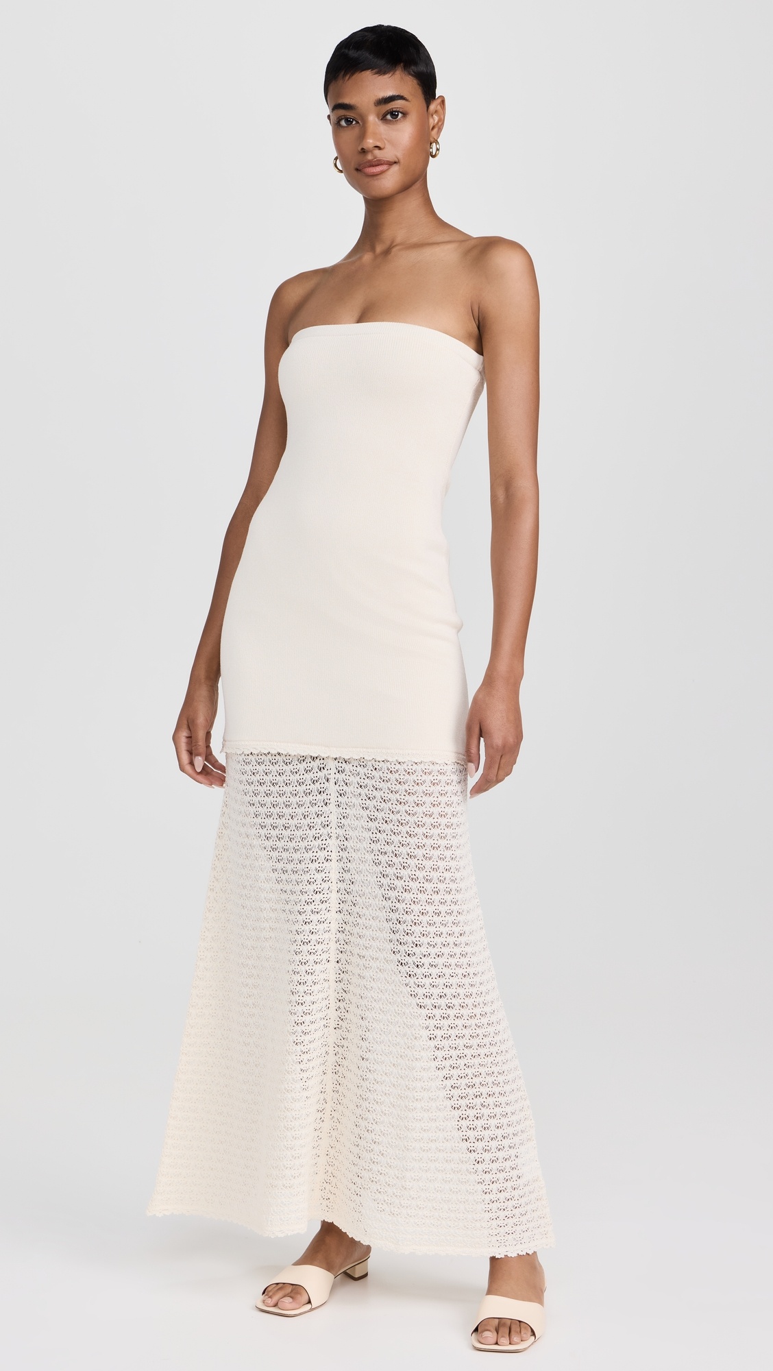 - Fabric: Mid-weight ribbed knit - Crochet lace skirt hem - Strapless - Pullover design, no closure - Shell: 60% polyester/40% viscose - Partially lined - Hand wash - Imported, China Style #POSSE30054