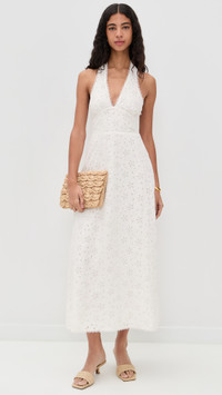 - Fabric: Mid-weight, low-stretch eyelet poplin - Smocked panel at back - Embroidered eyelet details - Midi length - Halter neckline - Sleeveless - Ties at back - Hook-and-eye and hidden zip at side - Shell: 100% cotton - Lined - Wash cold - Imported, India Style #POSSE30170 Size & Fit Model measurements: Size XS: Rocio (5'11") usually wears size XS Measurements from size S Length: 39.75in / 101.0cm, from center back