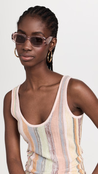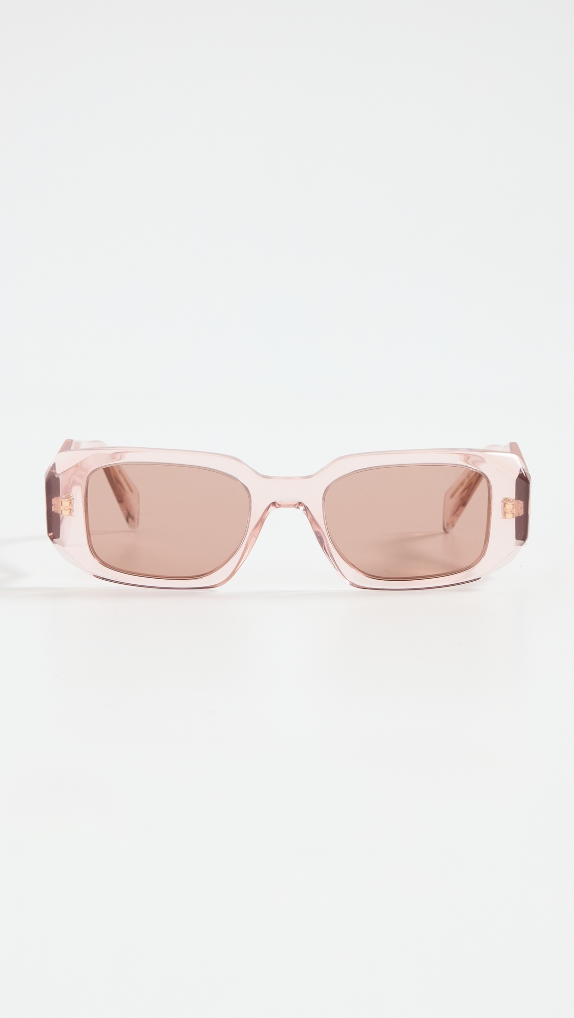 - Transparent frames with gold-tone hardware - Hardshell case included - Rectangular frame - Non-polarized lenses - Made in Italy - Plastic frame - Plastic lenses Style #PRADA30333 Size & Fit Width: 5.5in / 14cm Lens Width: 49mm Bridge: 20mm Arms: 145mm Height: 1.5in / 4cm