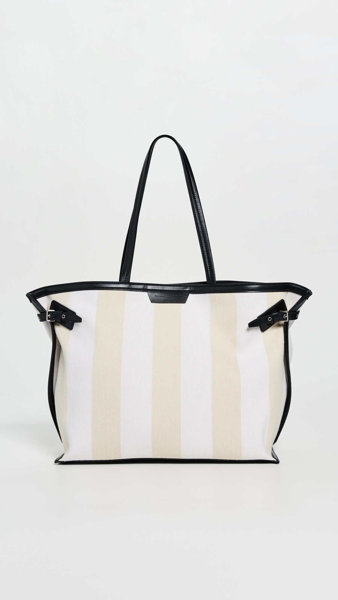 - Canvas - Leather trim - Stripe pattern - Side buckle details - Embossed logo - Silver-tone hardware - Magnetic closure - Multiple interior pockets - Lining: Unlined - Weight: 27oz / 0.77kg - Made in Italy Style #PROSH20885