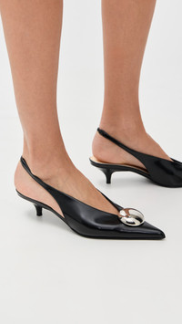 - Upper: Calfskin - Silver-tone accent at vamp - Slingback strap with elastic inset - Lining: Leather - Slip on - Pointed toe - Leather sole with rubber heel cap - Made in Italy - This item cannot be gift-boxed Style #PROSH20909 Size & Fit This shoe is available in whole sizes only. If you wear a half size, please size up. Heel: 1.5in / 40mm