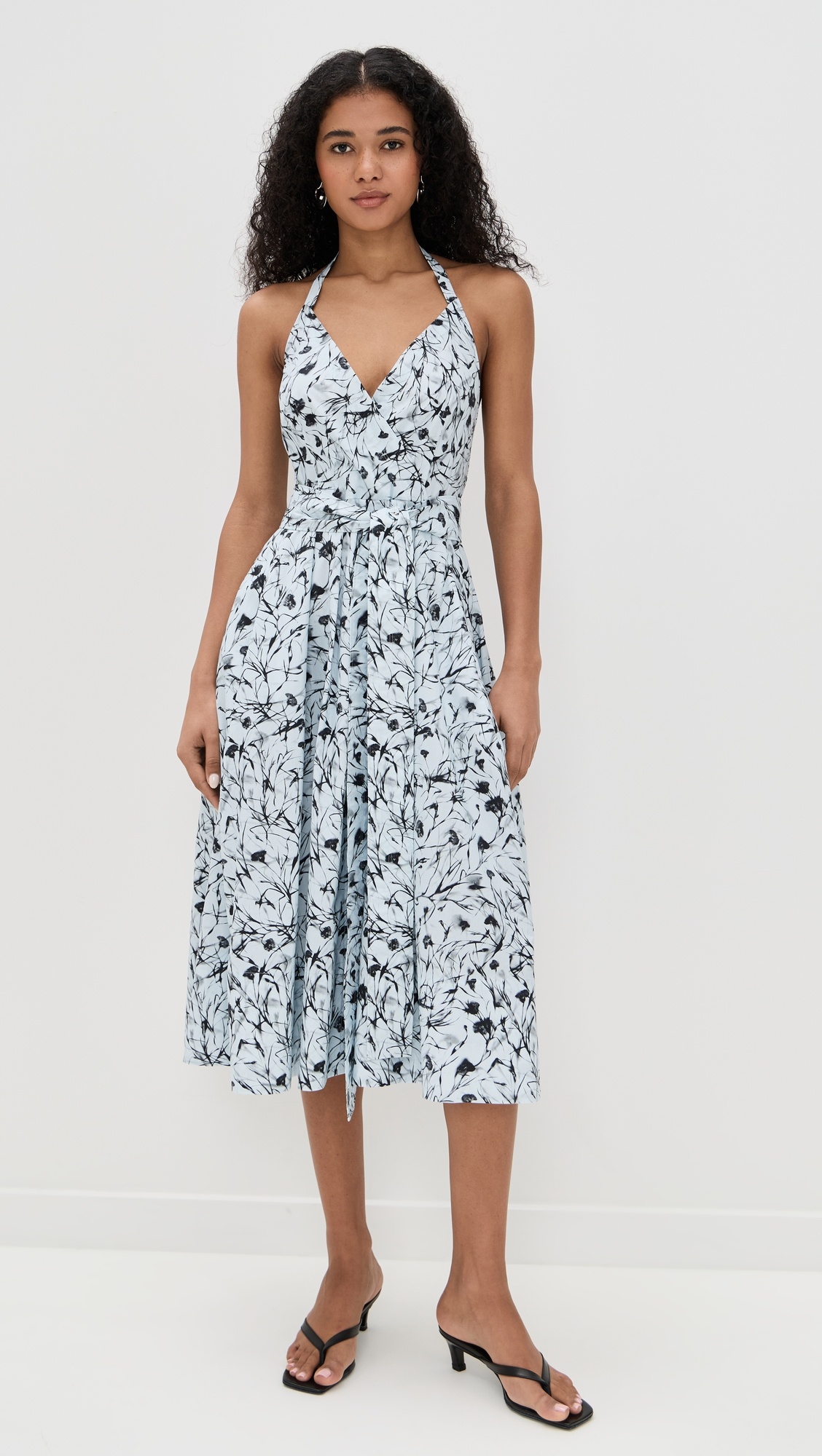 - Fabric: Mid-weight, low-stretch poplin - Midi length - Halter neckline - Sleeveless - Hook-and-eye and hidden zip at back - Self-belt at waist - Shell: 100% cotton - Unlined - Dry clean - Imported, China Style #PSWLL30519