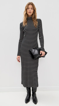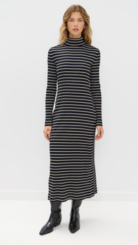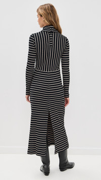 - Fabric: Lightweight, super-stretch ribbed knit - Stripe pattern - Split hem at back - Maxi length - Turtleneck - Long sleeves - Partial button placket at back - Shell: 94% cotton/6% spandex - Unlined - Hand wash - Imported, Vietnam Style #PSWLL30525 Size & Fit Model measurements: Size S: Abigael (5'10") usually wears size S Measurements from size S Length: 50.5in / 128.0cm, from shoulder to front hem