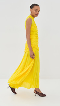 - Fabric: Lightweight crepe jersey with stretch - Top and skirt set - Ruched and draped design - Built-in shelf bra with elastic band - Hook-and-eye closures at shoulder - Maxi length - Mock neck - Sleeveless - Hook-and-eye and hidden zip at side - Shell: 65% acetate/35% polyamide - Partially lined - Spot clean - Imported, Poland Style #PROSH20969 Size & Fit Model measurements: Size 0: Alexis (5'8") usually wears size 0-2 Measurements from size 0 Length: 38.25in / 97.0cm, from shoulder Length: 37.75in / 96.0cm