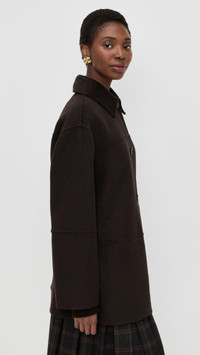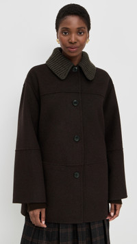 - Fabric: Mid-weight, non-stretch felt - Optional knit collar - Collared neck - Long sleeves - Button placket - Patch front pockets - Shell: 55% wool/35% polyester/10% cashmere - Trim: 100% wool - Unlined - Dry clean - Imported, China Style #PSWLL30524 Size & Fit Model measurements: Size 2: Bo (5'10.5") usually wears size 0-2 Measurements from size 2 Length: 30.75in / 78.0cm, from shoulder
