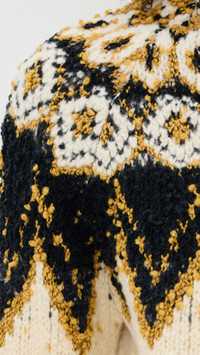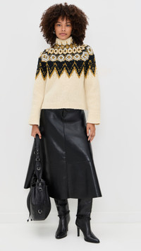 - Fabric: Mid-weight fair isle knit - Ribbed edges - Turtleneck - Long sleeves - Shell: 74% wool/19% cotton/7% polyamide - Dry clean - Imported, Turkey Style #PSWLL30523