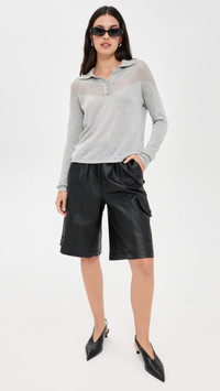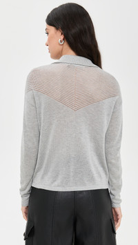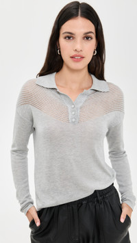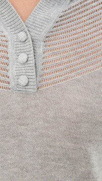 - Fabric: Lightweight slinky knit - Open knit yoke - Collared neck - Long sleeves - Partial button placket - Shell: 85% viscose/15% cashmere - Dry clean - Imported, China Style #PSWLL30514