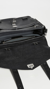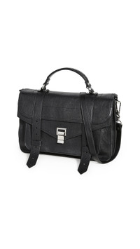 - Leather: Lambskin - Soft pebbled texture - Polished hardware - Fold-over flap with flip-lock clasp and tab inserts - Zip exterior pocket. interior zip and magnetic pockets - Optional, adjustable crossbody strap - Lined - Weight: 34oz / 0.96kg - Made in Italy - This item cannot be gift-boxed Style #PROSH20331 Size & Fit Height: 8.75in / 22cm Length: 13in / 33cm Depth: 5.5in / 14cm Strap drop: 20in / 51cm Handle drop: 2.75in / 7cm