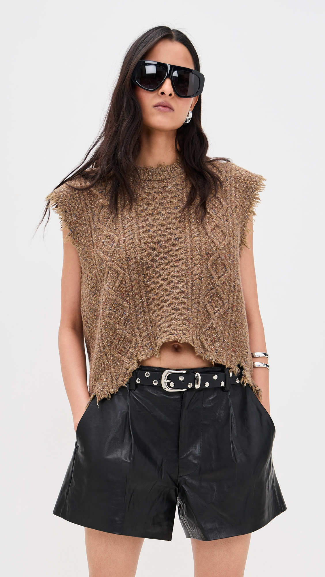 - Fabric: Mid-weight cable knit - Distressed edges - Crew neck - Sleeveless - Shell: 60% wool/20% recycled polyamide/20% viscose - Hand wash - Imported, China Style #RTHIR21650