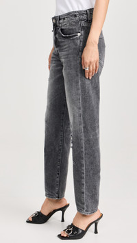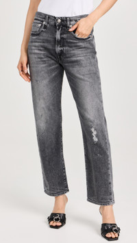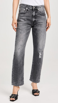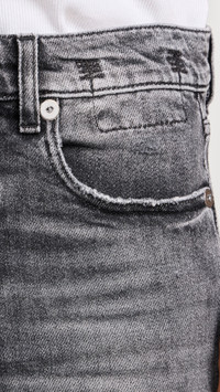 - Fabric: Heavyweight, non-stretch denim - Shredded holes and distressed hem - Faded wash - Antiqued rivets - Button closure and zip fly - 5-pocket styling - Shell: 100% cotton - Wash cold - Made in Italy Style #RTHIR21513 Size & Fit Customers say: Runs large Model measurements: - Size 24: Moon (5'8") usually wears size 24 - Size 30: Kate (5'9") usually wears size 29-30 Measurements from size 24 Rise: 11in / 28cm Inseam: 27.5in / 70cm Leg opening: 15.25in / 39cm