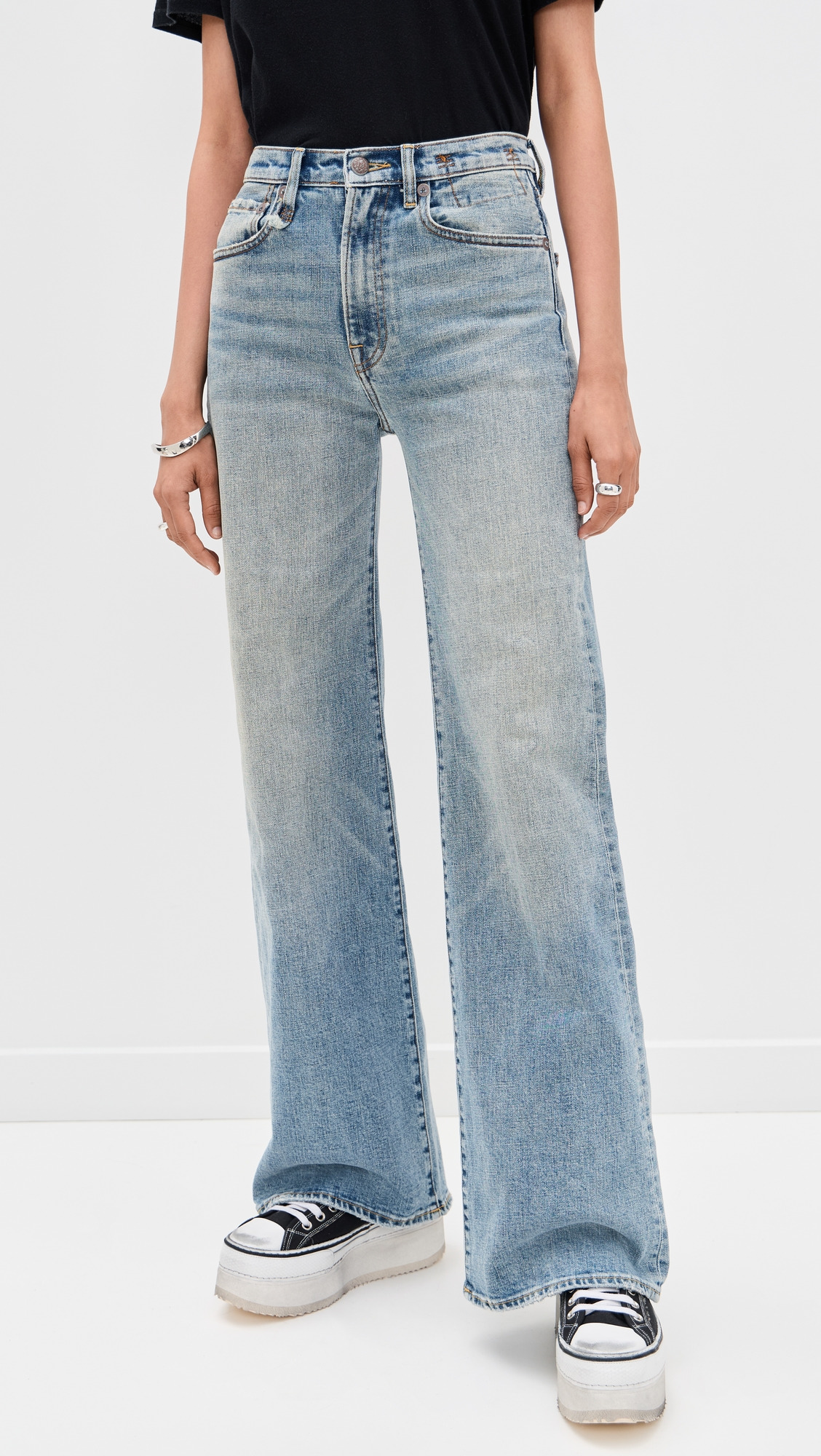 - Fabric: Mid-weight stretch denim - Distressed edges - Fading and whiskering - Button closure and zip fly - 5-pocket styling - Shell: 98% cotton/2% polyurethane - Wash cold - Imported, China Style #RTHIR21641 Size & Fit Designed with a high rise and a relaxed flare leg. Stretch denim has a mid-weight feel. Shopbop’s expert stylist says: Runs true to size. Those between sizes should size up Model measurements: Size 25: Priyanka (5'9") usually wears size 24 Measurements from size 26 Rise: 11in / 28cm Inseam: 32.75in / 83cm Leg opening: 22in / 56cm