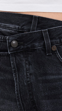 - Fabric: Mid-weight, non-stretch denim - Crossover button waist - Frayed hem - 5-pocket styling - Shell: 100% cotton - Wash cold - Made in Italy Style #RTHIR21344 Size & Fit Model measurements: Size 26: Emily (5'9") usually wears size 25-26 Measurements from size 25 Rise: 11.75in / 30cm Inseam: 4in / 10cm