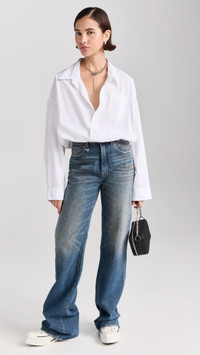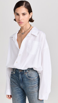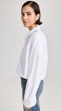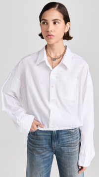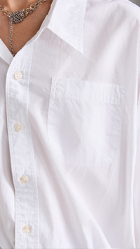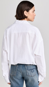 - Fabric: Lightweight, non-stretch shirting - Dropped shoulders - Elastic bubble hem - Collared neck and button placket - Patch breast pocket - Shell: 100% cotton - Wash cold - Imported, China - Long sleeves with button cuffs Style #RTHIR21488 Size & Fit Customers say: Runs large; please size down. Model measurements: - Size S: Lala (5'8") usually wears size XXS - Size L: Kate (5'9") usually wears size L - Size XS: Rocio (5'11") usually wears size XS Measurements from size S Length: 20.5in / 52.0cm, from shoulder