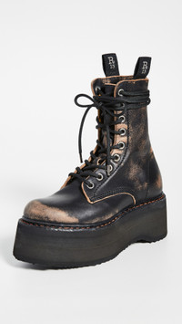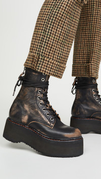 - Upper: Cowhide - Distressed leather - Pull tab at sides - Leather lining - Welt stitching accent - Stacked heel - Lace-up closure - Rounded toe - Rubber sole - Lined - Made in Italy - This item cannot be gift-boxed Style #RTHIR21175 Size & Fit This shoe is available in whole sizes only. If you wear a half size, please size up. Platform: 2.25in / 55mm