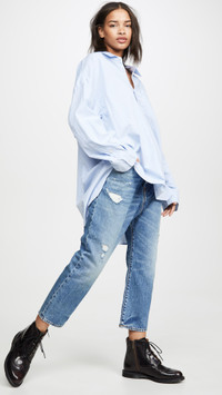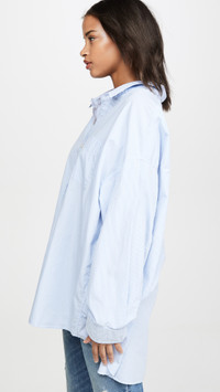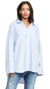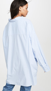 - Fabric: Lightweight, non-stretch shirting - Dropped shoulders - Oversized silhouette - Tunic length - Collared neck - Button at placket - Patch breast pocket - Shell: 100% cotton - Wash cold - Imported, China - Long sleeves with button cuffs Style #RTHIR20796 Size & Fit Customers say: Runs large; please size down. Model measurements: Size XS: Lola (5'8") usually wears size S Measurements from size S Length: 30.75in / 78.0cm, from shoulder