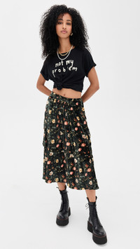 - Fabric: Lightweight, non-stretch velvet - Floral print - Ruffled waist and hem - Partial elastic waistband - Cargo pockets - Shell: 82% viscose/18% silk - Unlined - Dry clean - Made in Italy Style #RTHIR21686 Size & Fit Model measurements: Size XS: Mical (5'10") usually wears size XS Measurements from size XS Length: 31in / 79.0cm