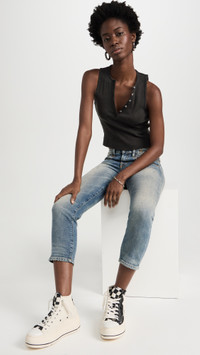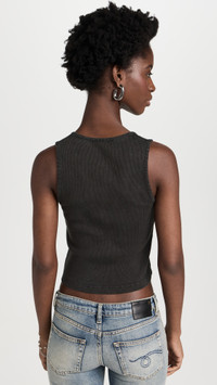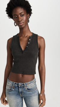 - Fabric: Lightweight ribbed jersey - Cropped length - Henley style - Partial button placket - Shell: 100% cotton - Wash cold - Imported, China - Sleeveless Style #RTHIR21490 Size & Fit Model measurements: Size S: Cher (5'11") usually wears size XS Measurements from size S Length: 18in / 46.0cm, from shoulder