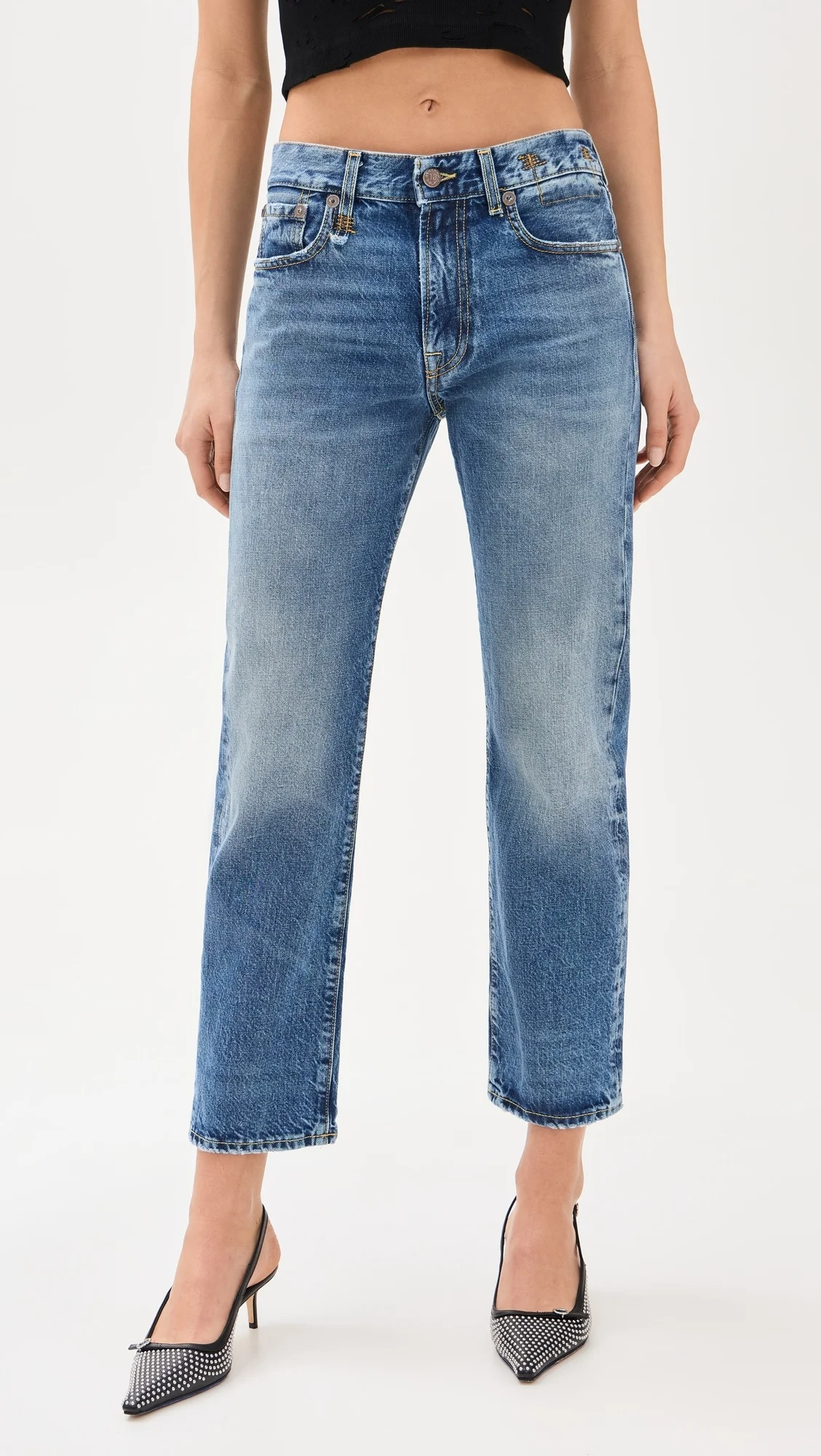 - Fabric: Mid-weight, non-stretch denim - Button closure and zip fly - 5-pocket styling - Shell: 100% cotton - Wash cold - Made in Italy Style #RTHIR21589 Size & Fit Designed with a low rise and a slim straight leg, which has a cropped inseam. Non-stretch denim will soften and give with wear. Shopbop’s expert stylist says: Runs true to size Model measurements: Size 25: Mia (5'9.5") usually wears size 24-25 Measurements from size 25 Rise: 9.75in / 25cm Inseam: 27.5in / 70cm Leg opening: 15in / 38cm