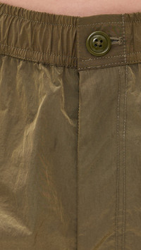 - Fabric: Lightweight, non-stretch technical weave - Button closure and zip fly - Covered elastic waistband - Patch and flap side pockets - Shell: 100% nylon - Dry clean - Made in the USA Style #RTHIR21620