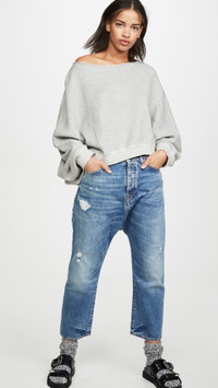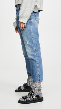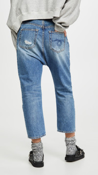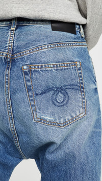 - Fabric: Mid-weight, non-stretch denim - Fading and whiskering - Long rise silhouette - Leather patch at back - Cropped profile - Button closure and zip fly - Slant hip and back patch pockets - Shell: 100% cotton - Wash cold - Made in Italy Style #RTHIR20785 Size & Fit Measurements from size 25 Rise: 14.5in / 37cm Inseam: 21.75in / 55cm Leg opening: 15in / 38cm