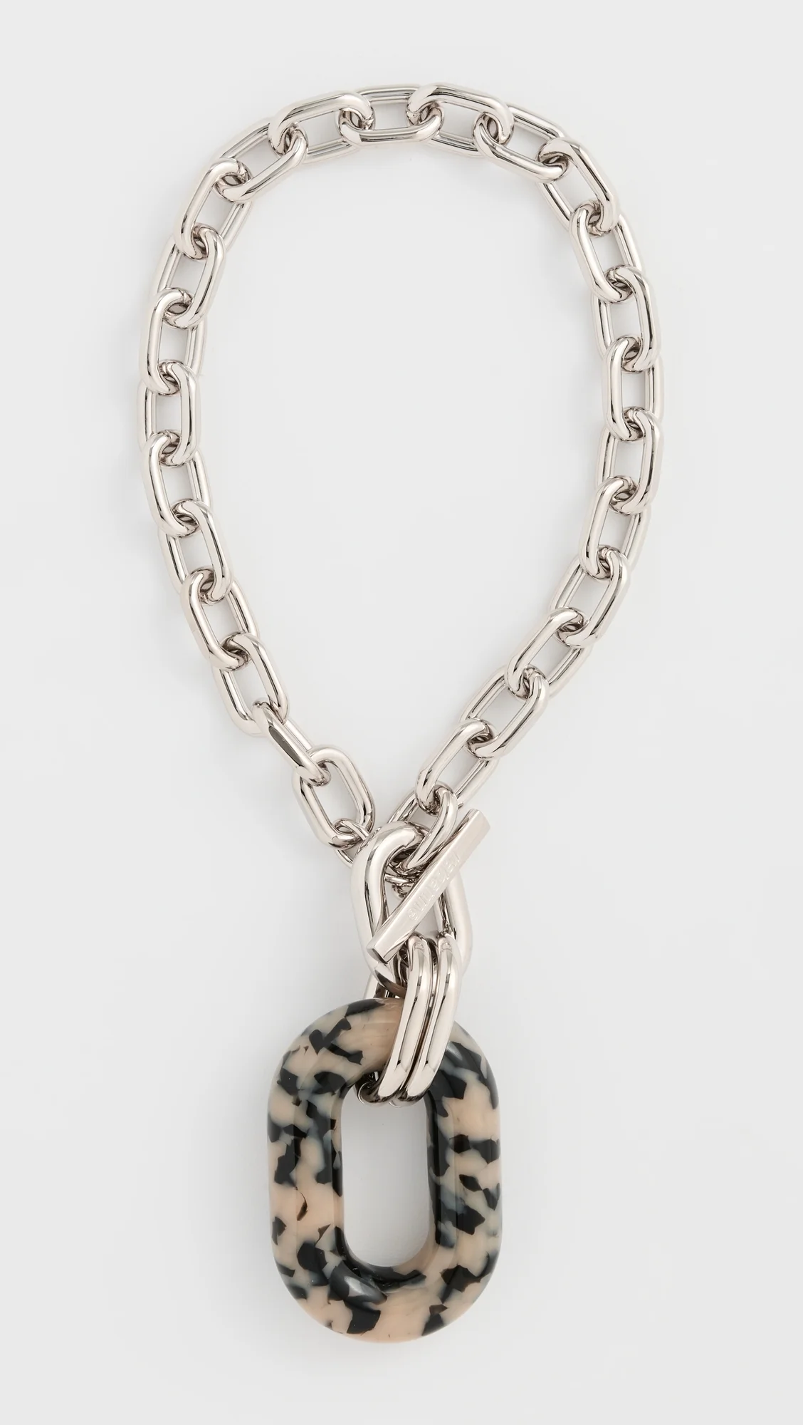 - Silver-tone metal - Resin tortoiseshell link pendant - Brass - Ring and toggle closure - Made in Italy Style #PACOO30870