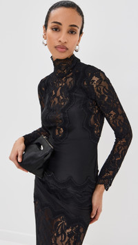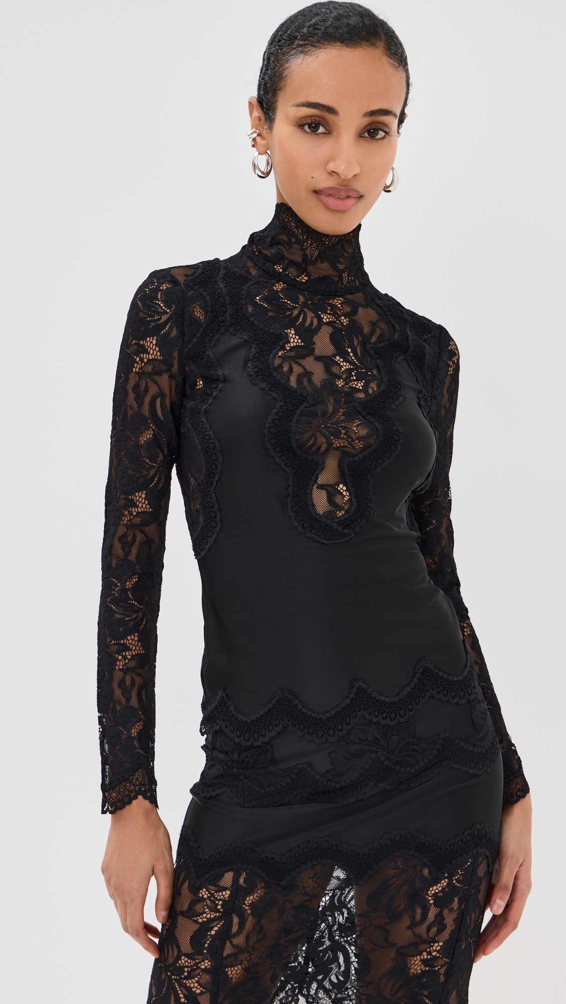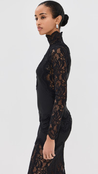 - Fabric: Lightweight silky jersey - Sheer lace panels - Mock neck - Shell: 90% polyamide/10% elastane - Trim: 90% viscose/10% elastane - Hand wash - Imported, Tunisia - Long sleeves Style #PACOO30708