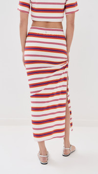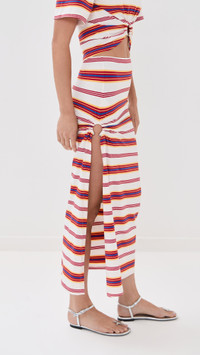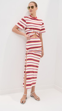 - Fabric: Lightweight, super-stretch jersey - Asymmetrical cutout side with silver-tone ring accent - Stripe print - Covered elastic waistband - Shell: 96% cotton/4% elastane - Unlined - Wash cold - Made in Portugal Style #PACOO30767 Size & Fit Model measurements: Size 34: Margaret (5'11") usually wears size 32 Measurements from size 36 Length: 35.5in / 90.0cm