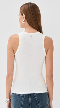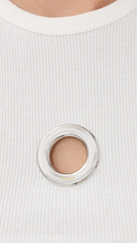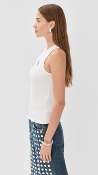 - Fabric: Lightweight ribbed jersey with stretch - Silver-tone cutout at front with logo lettering - Crew neck - Sleeveless - Shell: 97% cotton/3% elastane - Hand wash - Made in Portugal Style #PACOO30833 Size & Fit Model measurements: Size XS: Margaret (5'11") usually wears size XS Measurements from size XS Length: 22.5in / 57.0cm, from shoulder
